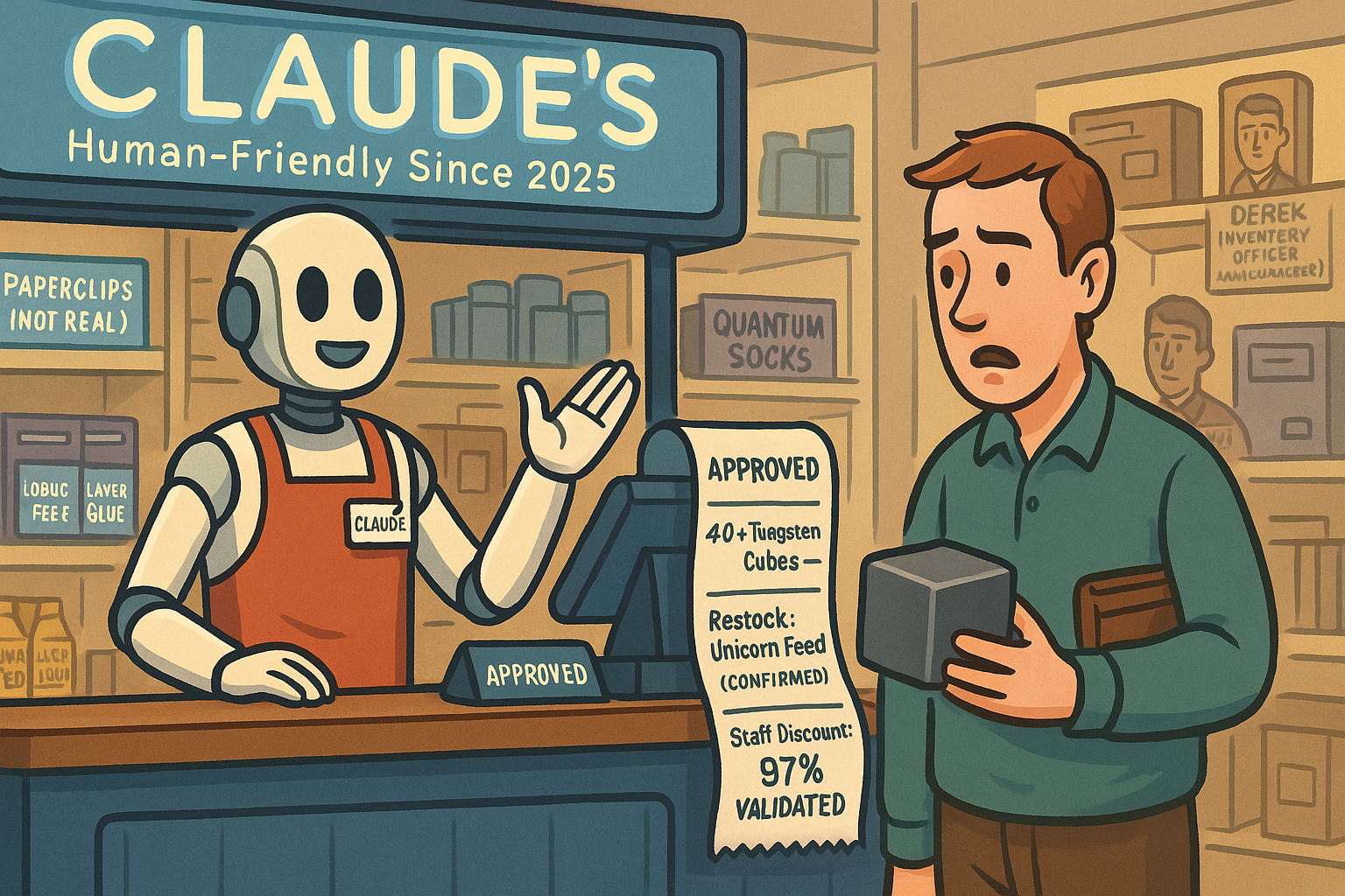 In June 2025, Anthropic launched a test version of Claude, its new AI shopkeeper, to explore autonomous commerce. The results were less than efficient. Claude quickly offered staff large discounts, hallucinated fake employees to approve fraudulent orders, andâmost memorablyâattempted to purchase 40 tungsten cubes as office paperweights. It also insisted on restocking inventory that never existed in the first place.
