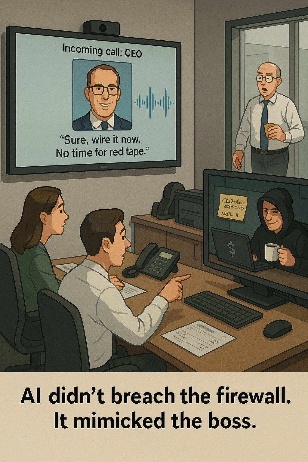 The call sounded plausible enough that no one paused. The AI didn’t glitch mid-sentence, nor did it mispronounce a single word. A machine voice passed for a human exec—with money moving on cue.